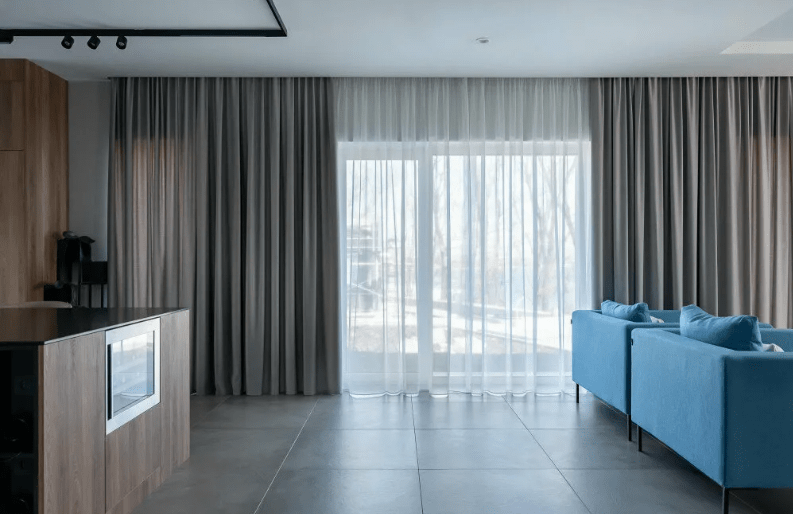 Теперь можно регулировать положение каждого карниза с помощью стрелок или шкалы, причем не только полностью раздвинуть шторы, но и зафиксировать их в промежуточном положении.